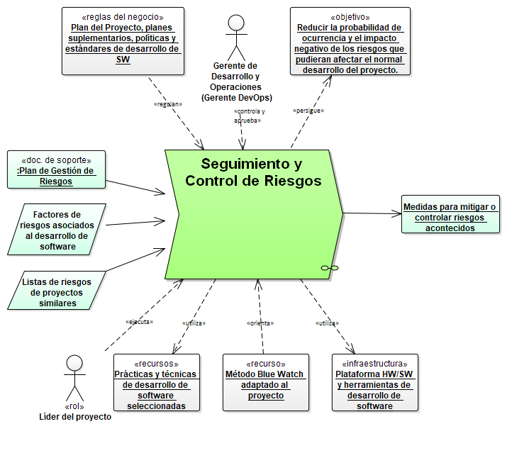 La Gestión de Riesgos es un proceso de soporte mediante el cual se gestionan todos aquellos eventos o sucesos que pueden afectar el normal desenvolmiento del proyecto de desarrollo de una aplicación.<br/><br/>En este proceso se identifican, clasifican y analizan todos aquellos riesgos que pueden afectar el proyecto. Para aquellos riesgos que ocasionen el mayor impacto o tengan la mayor probabilidad de ocurrir, se elabora un plan de contingencia o respuesta que describe las acciones que el Líder del Proyecto debe tomar para prevenir, mitigar o controlar los riesgos que acontezcan.<br/>